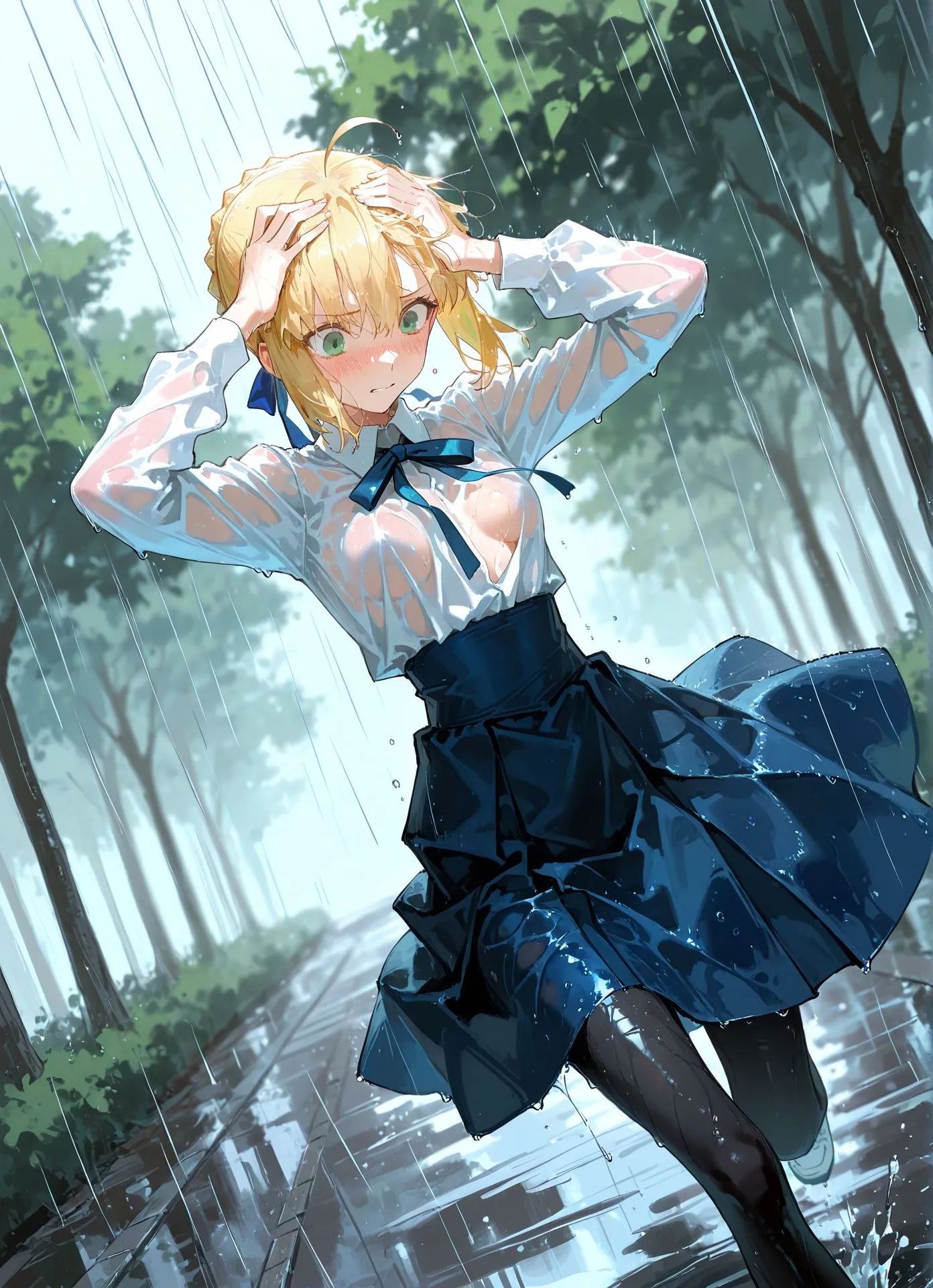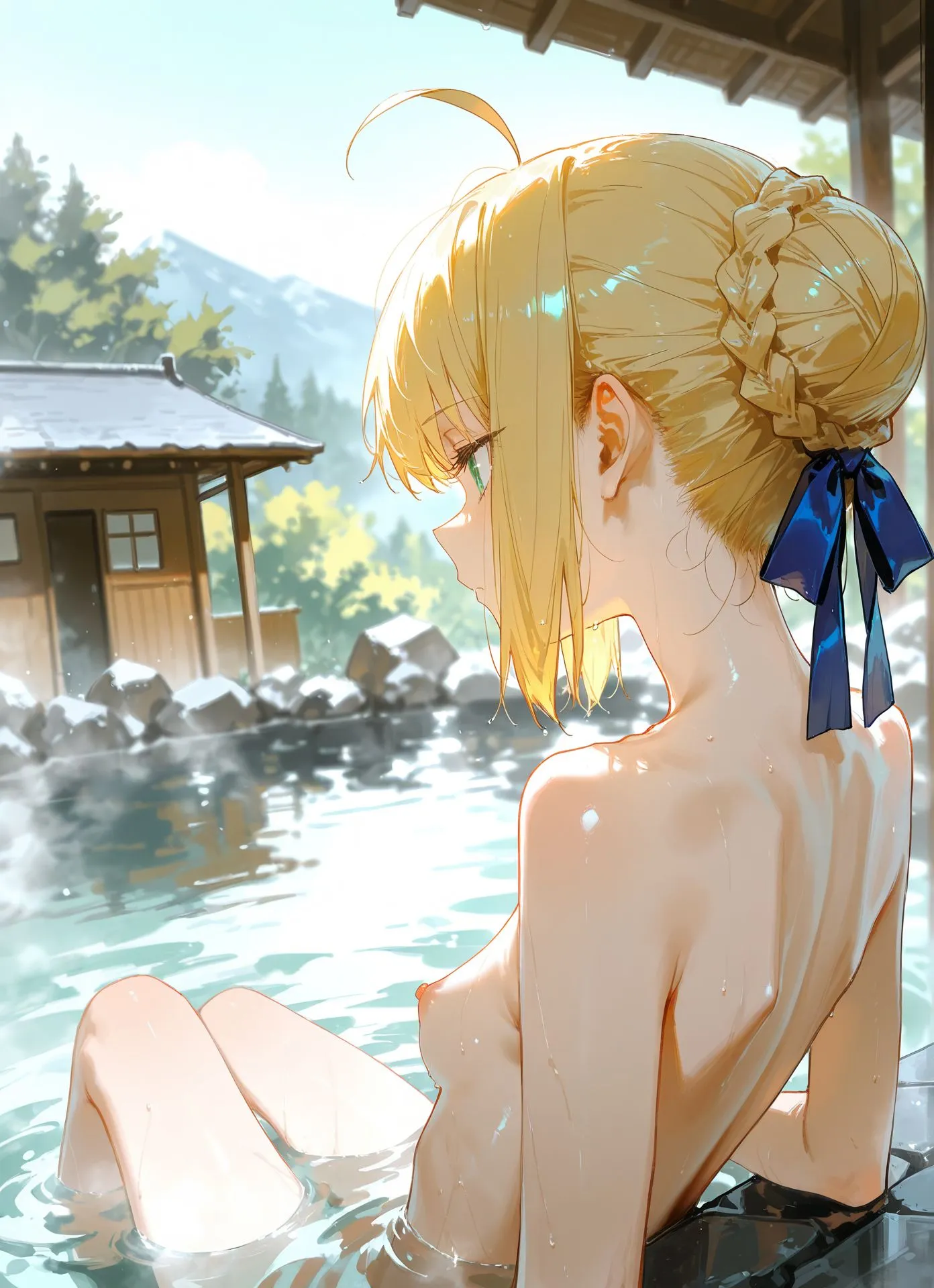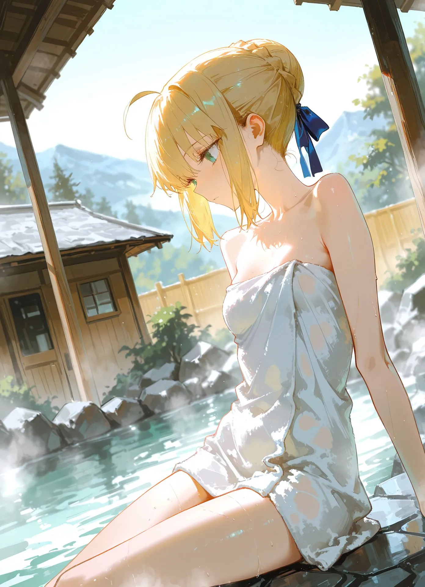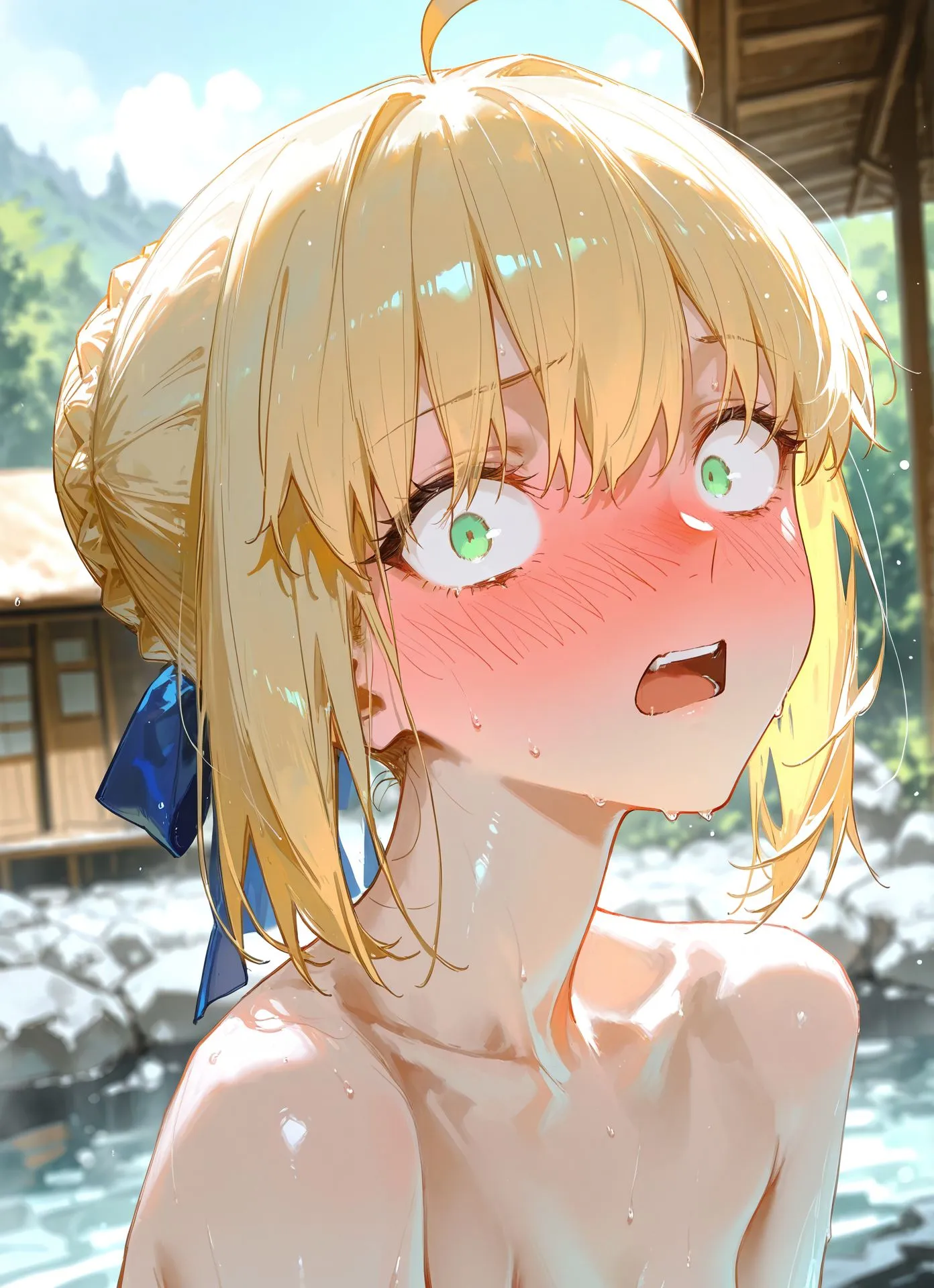 セイバー、男湯に挑戦 [AI Generated]